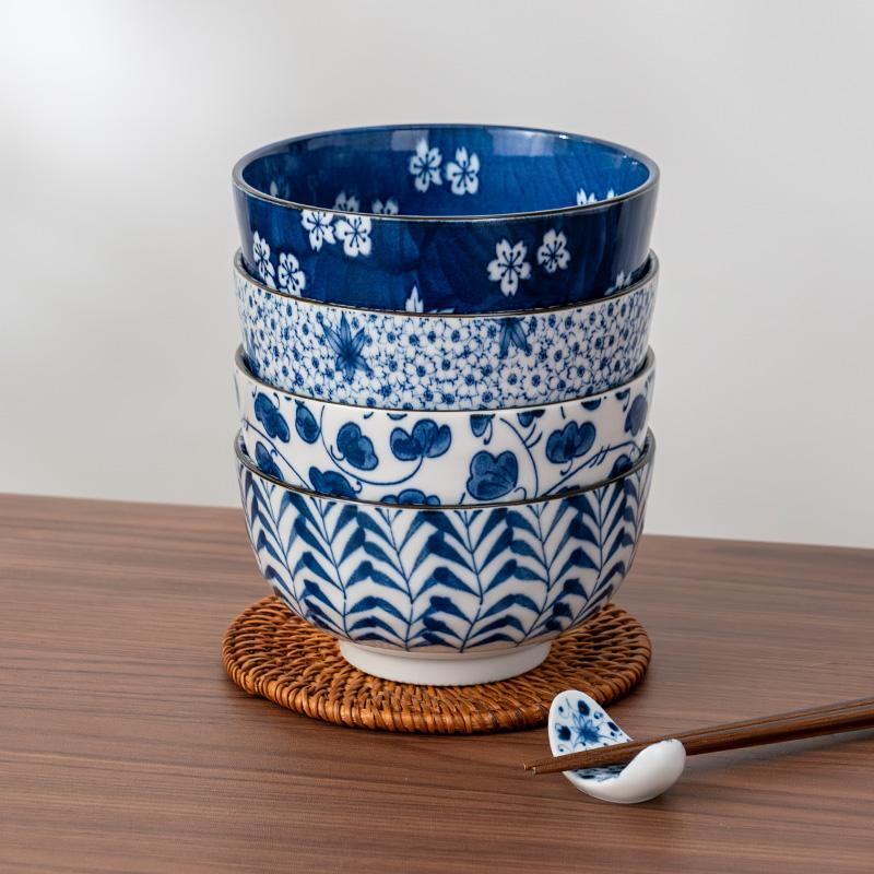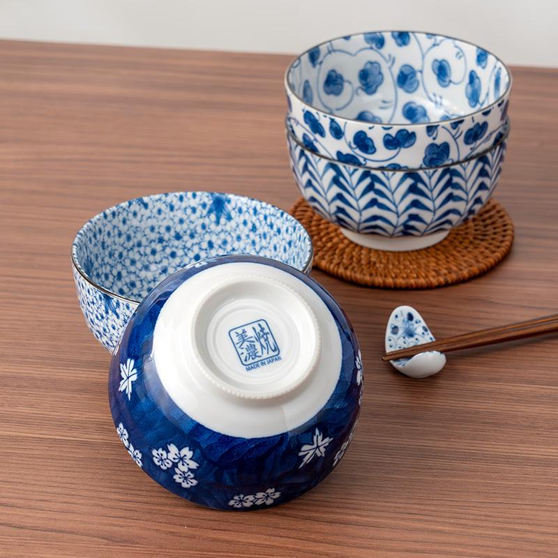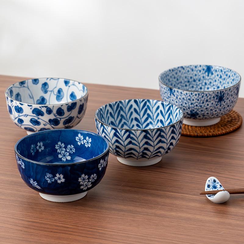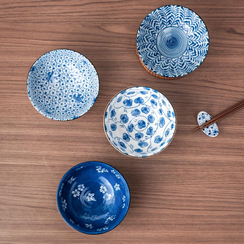美浓烧家用清新米饭碗餐具单个装日式蓝绘小饭碗多用碗和风陶瓷碗