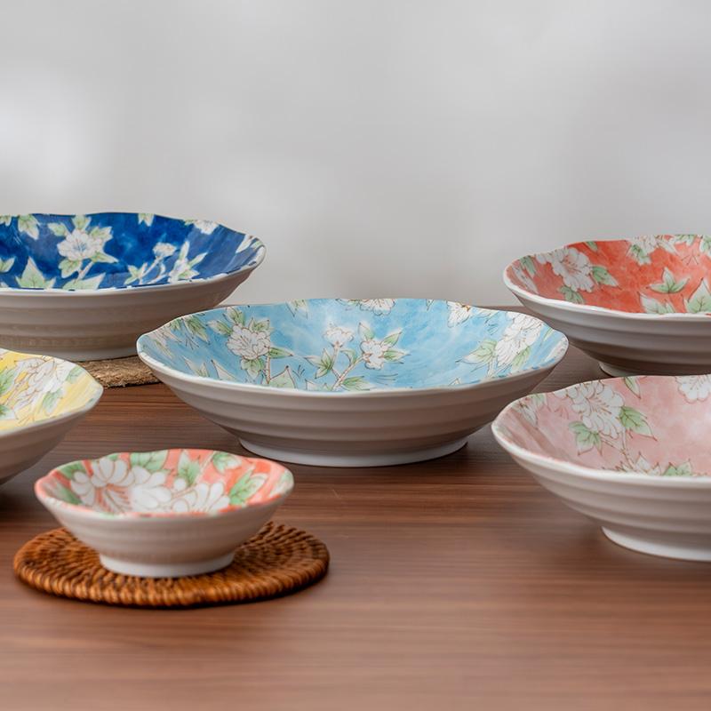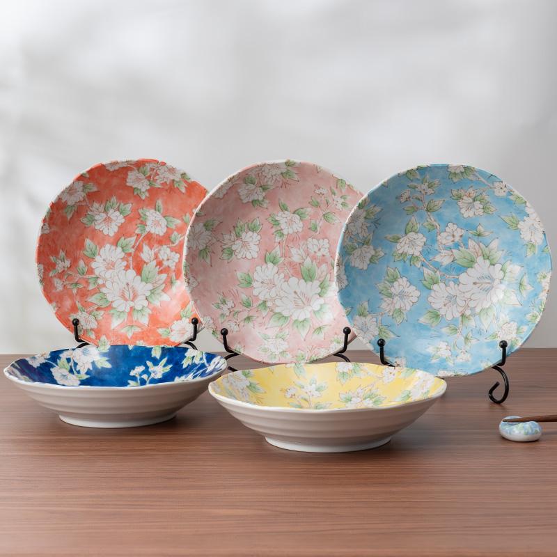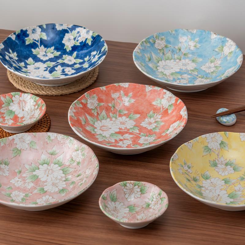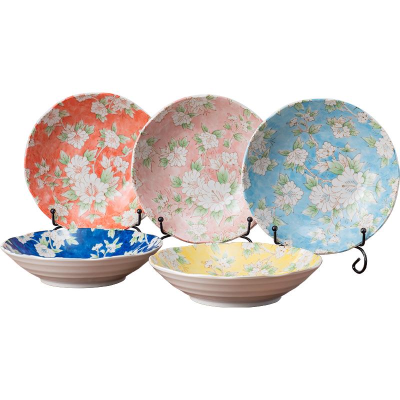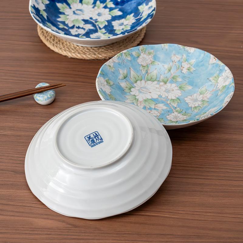 美浓烧大容量清新菜盘沙拉盘餐具套装日式木槿花餐盘深盘5个家用