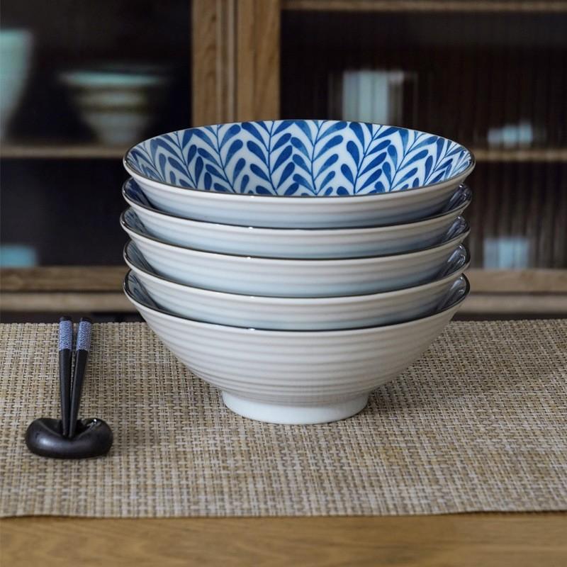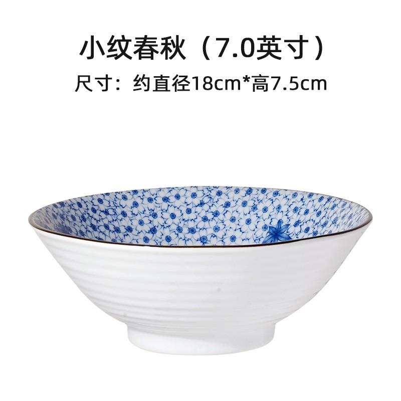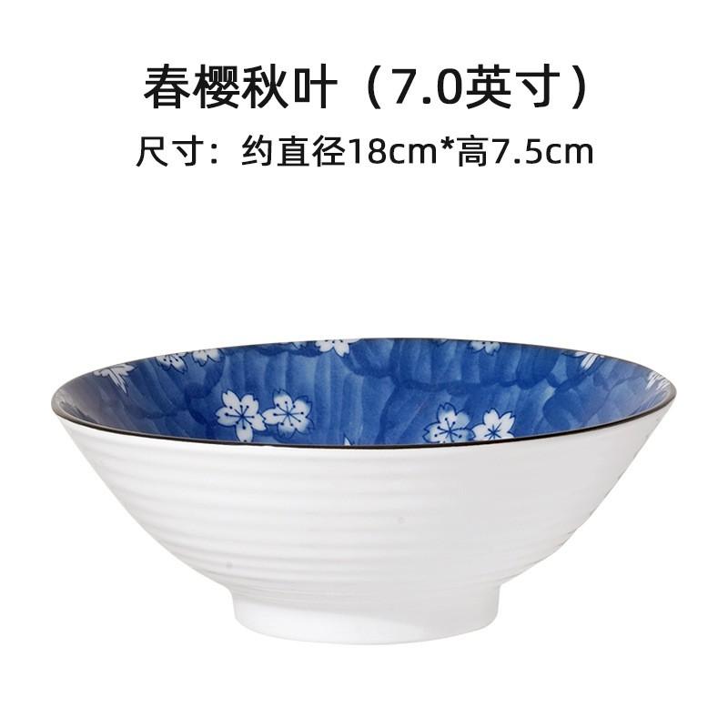 日式釉下彩斗笠碗高颜值面碗家用青花瓷7.0英寸好看的碗沙拉碗
