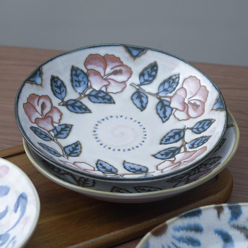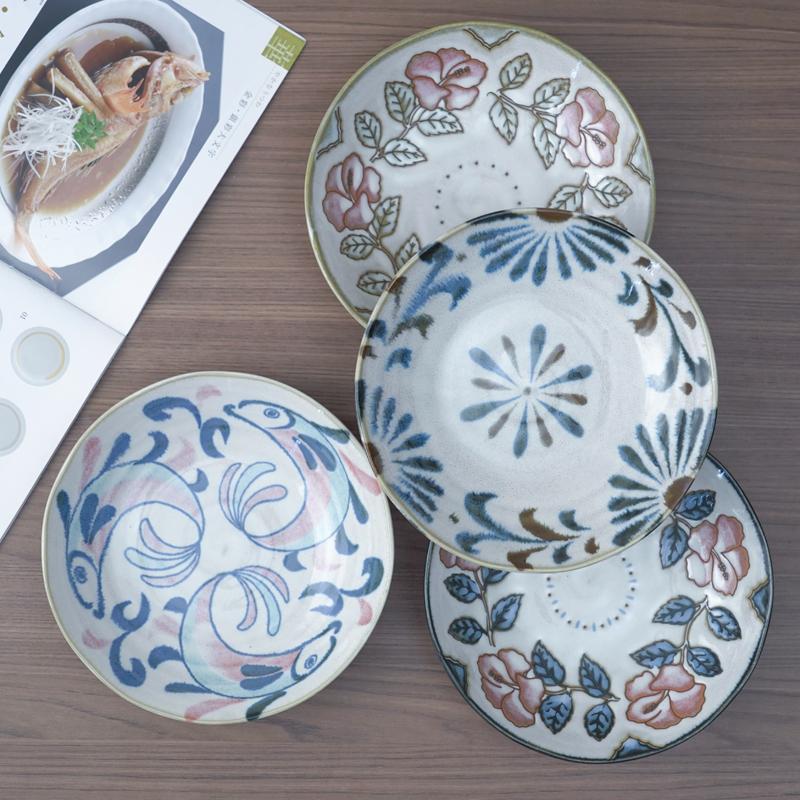 美浓烧日式南国盘子菜盘家用陶瓷套装釉下餐盘高级菜碟深盘四件套