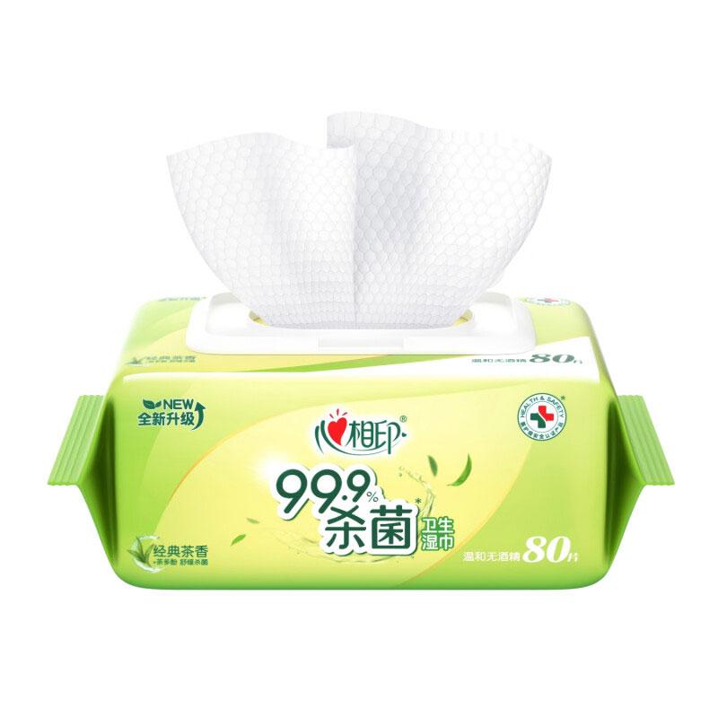 心相印 医护级杀菌湿巾80抽*3包 经典茶香大包加厚湿纸 99.9%杀菌消毒卫生湿巾