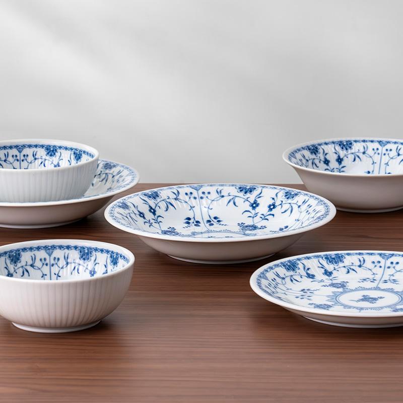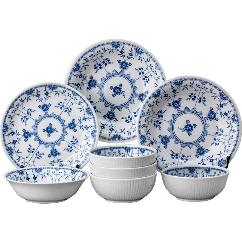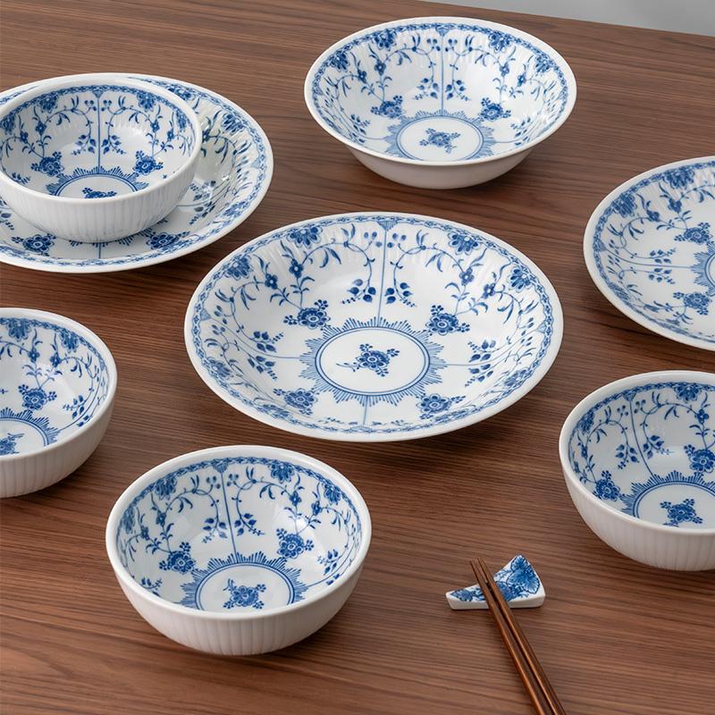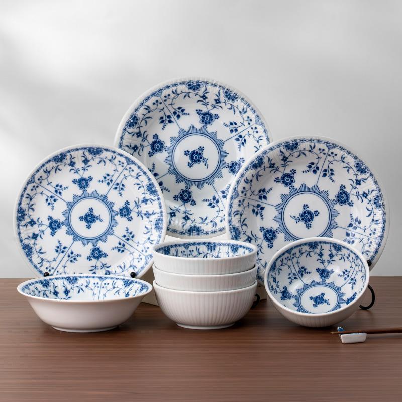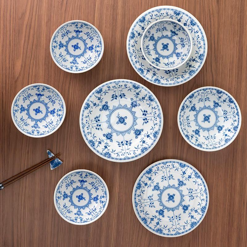 美浓烧釉下吉祥唐草碗盘八件套日本进口颜值餐盘送礼餐具套装